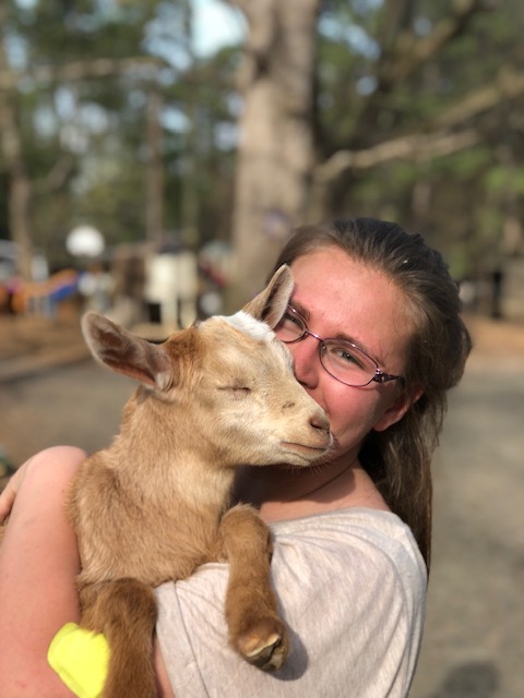 I love this picture because I have worked at Winterpast Farm with my mom for the past 16 years. On the Farm I change cages and feed and water the animals. I love helping with people that visit the farm because they feed animals and they are sweet to animals.